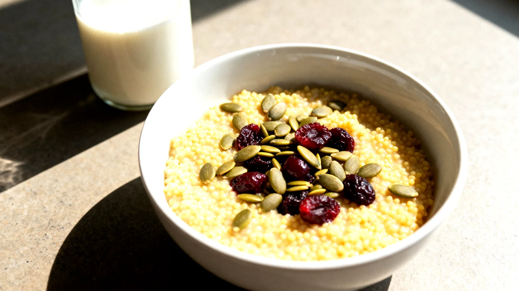 Quando si chiude una giornata di allenamento intenso, il corpo non chiede solo di recuperare le energie spese: reclama un riposo di qualità che permetta ai muscoli di rigenerarsi e al sistema nervoso di ritrovare il proprio equilibrio. Il porridge di miglio con latte di mandorla, semi di zucca e ciliegie essiccate rappresenta una risposta nutrizionale tanto sofisticata quanto naturale a questa duplice esigenza, unendo il recupero post-workout alla preparazione fisiologica al sonno.