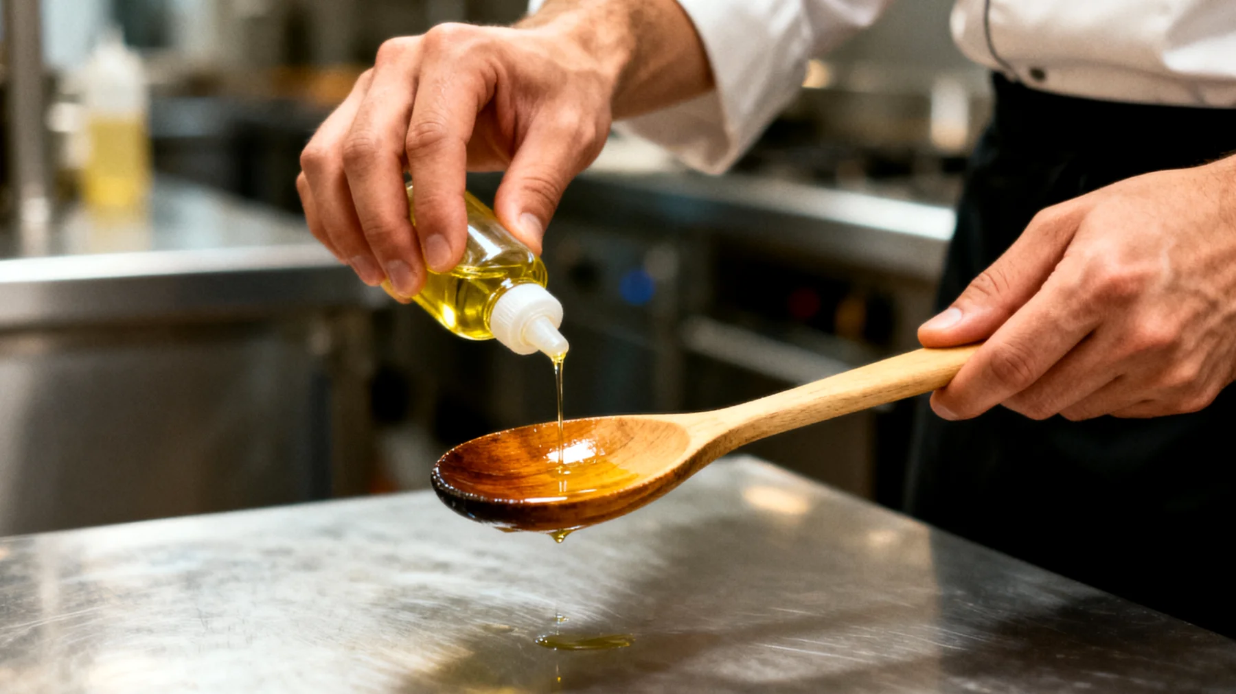 Non tutti gli oli sono adatti al legno da cucina. Gli oli vegetali, come quello d’oliva o di semi, irrancidiscono nel tempo, lasciando odori sgradevoli e resine appiccicose. L’alternativa professionale, ampiamente utilizzata nel settore della ristorazione, è l’olio minerale per uso alimentare: inodore, stabile, idratante, non irrancidisce e non altera il sapore del cibo.