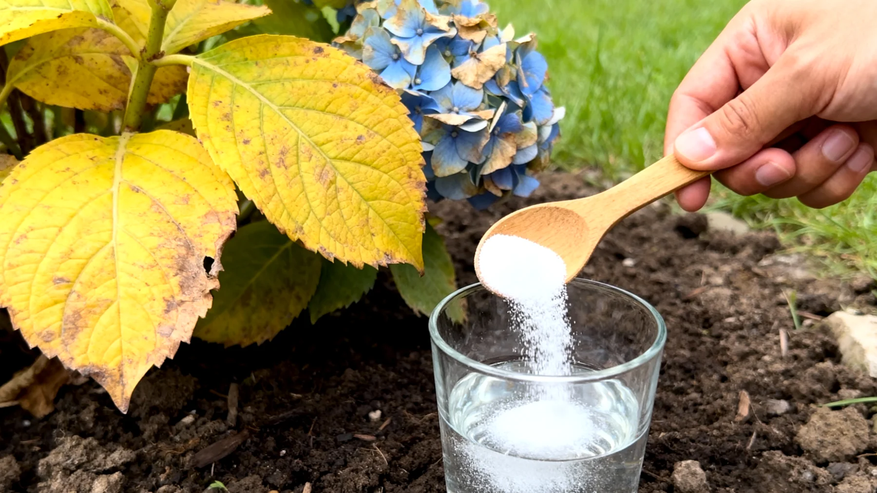Molti appassionati ricorrono ai cosiddetti chelati di ferro per risolvere la clorosi, ma il solfato ferroso (FeSO₄) ha una duplice azione particolarmente vantaggiosa per le ortensie. Da un lato apporta ferro in forma disponibile a pH acido, dall’altro contribuisce esso stesso ad acidificare il terreno nel tempo, creando un effetto sinergico che si autoalimenta.